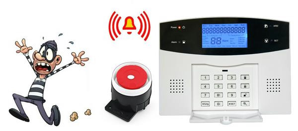 Khi hệ thống chống trộm ở chế độ mở, hệ thống sẽ dùng mắt hồng ngoại và cảm biến từ để bảo vệ ngôi nhà. Nếu mắt hồng ngoại phát hiện có người trong vùng bảo vệ hoặc cửa từ phát hiện nhà bị cạy cửa, chúng sẽ truyền tín hiệu về bộ điều khiển trung tâm. Lập tức trung tâm sẽ bật còi hú báo động, đồng thời điều khiển tự động gọi điện đến cho các số điện thoại đã cài đặt trước (Cài đặt được tối đa 9 số điện thoại gọi điện và 6 số điện thoại nhắn tin, bao gồm số di động, điện thoại bàn, các số khẩn cấp,..). Ta có thể dùng điện thoại để tắt báo trộm vào những thời điểm không thật sự cần thiết.