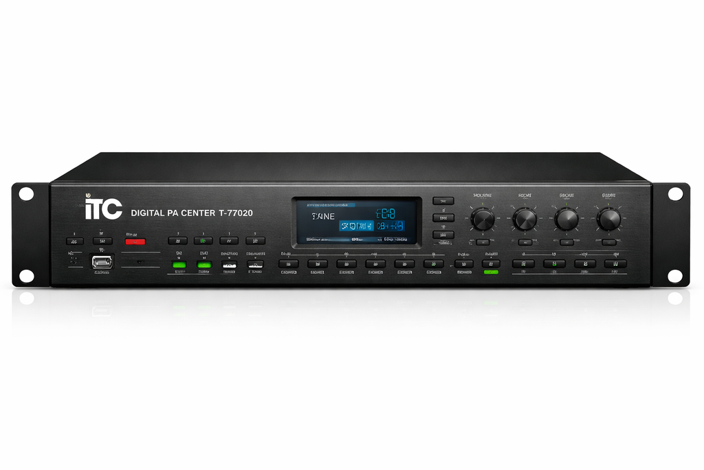 ITC T-7702A là bộ điều khiển trung tâm trong hệ thống âm thanh thông báo (PA System) của ITC. Thiết bị đóng vai trò xử lý, quản lý và điều phối toàn bộ tín hiệu âm thanh trong các công trình như trường học, bệnh viện, nhà xưởng, tòa nhà văn phòng và trung tâm thương mại.
