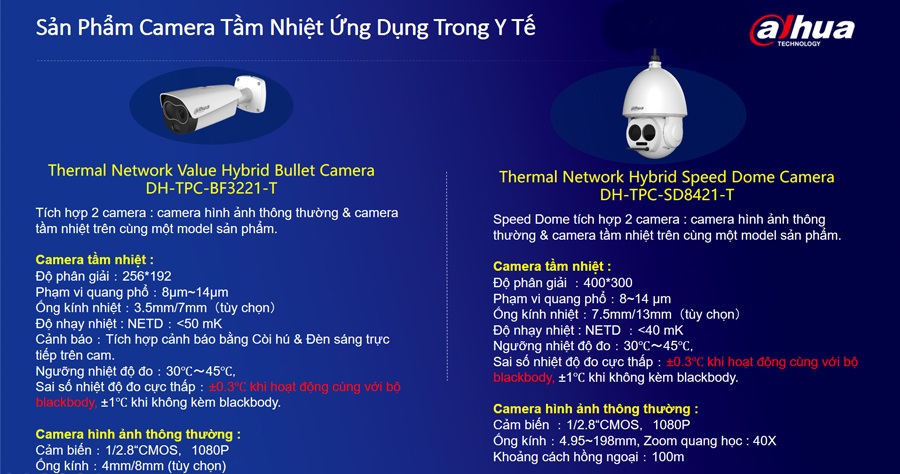 Các thiết bị Camera Thân Nhiệt của Dahua giúp đo thân nhiệt cơ thể người gần như chính xác. Mà không cần chạm hay lại gần người cần đo tại các cửa ra vào của: Sân Bay, Ga Tàu, Cầu Cảng, Bệnh Viện, Trường Học, Công Viên, Hải Quan, Nhà Hàng …. Từ đó đưa ra cảnh báo bằng Còi hú & Đèn Sáng một cách tự động khi phát hiện những người có nguy cơ nhiễm bệnh mà bị sốt từ 38℃ trở lên. Là bước phát hiện & sàng lọc lúc ban đầu rất quan trọng để tiến hành cách ly những người nghi nhiễm virus.