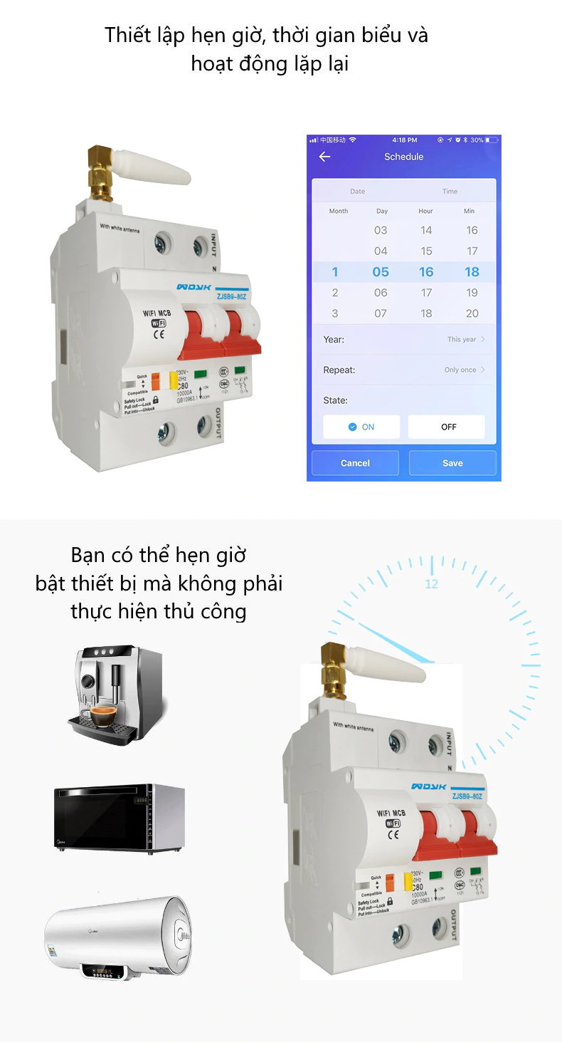 Cầu dao điện điều khiển từ xa WiFi eWeLink EMCP2PM