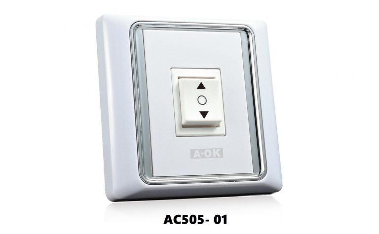 Công tắc điều khiển gắn tường AOK AC505 – 01 được sử dụng để điều khiển rèm cuốn tự động Aok trực tiếp, với 3 chế độ: LÊN, XUỐNG và DỪNG.