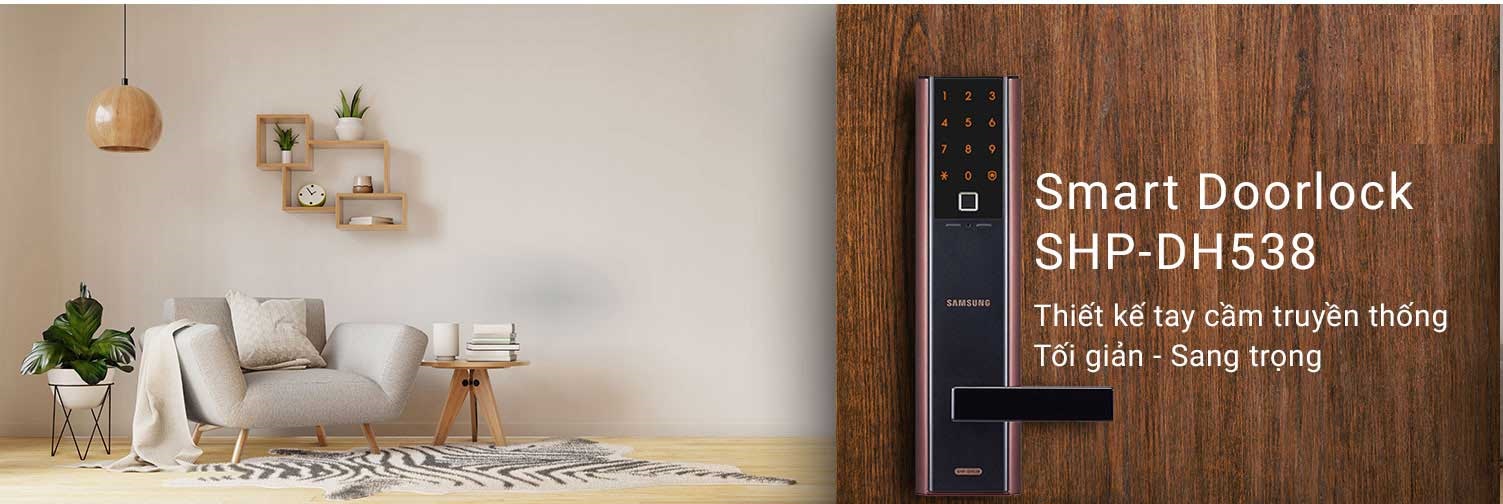 Khóa cửa điện tử Samsung SHP –DH538MU/EN với thiết kế sang trọng, tinh tế màu sắc trang nhã phù hợp sử dụng với mọi không gian từ nhà ở biệt lập đến căn hộ, khách sạn cao cấp.