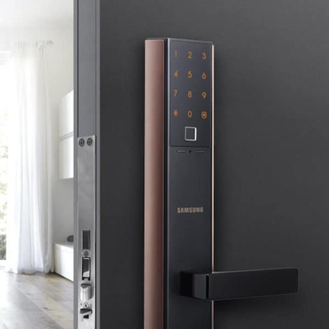 Khóa cửa điện tử Samsung với thiết kế tinh tế, đơn giản mang tính thời thượng.