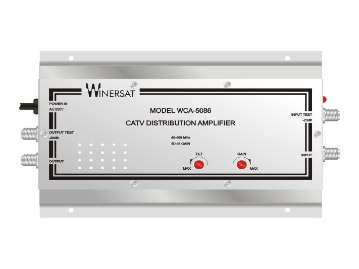 Bộ khuếch đại WINERSAT WCA-5086 rất lý tưởng cho hộ gia đình, nhà nghỉ và các tổ chức, các đơn vị có nhu cầu sử dụng trên 20 tivi, các cá nhân không am tường về kỹ thuật, vì bộ khuếch đại WINERSAT WCA-5086 là thiết bị điều chỉnh linh hoạt nhất trong các dòng khuếch đại tín hiệu truyền hình cáp với các điện trở Tilt Control & Gain Control, độ bền đạt ngưỡng tối đa, giá cả phải chăng cùng rất nhiều ứng dụng trong việc giảm nhiễu đứng hình, sọc, đứt hình của tín hiệu cáp HD.....
