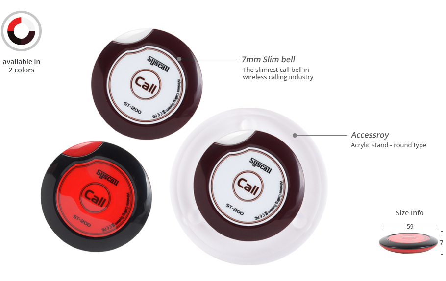- Nút chuông gọi phục vụ ST-200 có 1 chức năng duy nhất đó là chức năng gọi phục vụ.