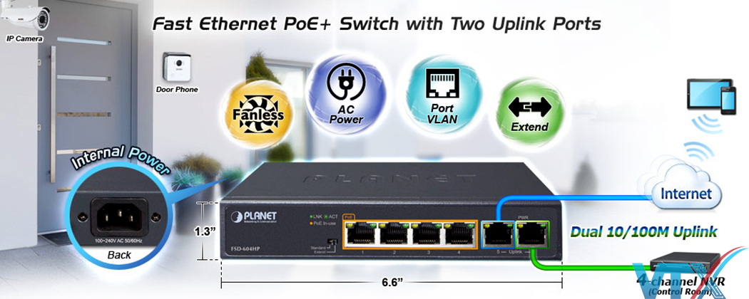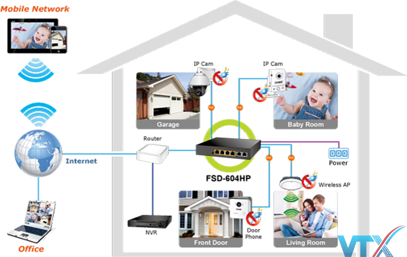 Với tính năng mở rộng, FSD-604HP 802.3at/af PoE Switch giúp người dùng tại SOHO/home tạo ra dữ liệu tích hợp, video và mạng được cấp nguồn. Camera AP và PoE IP không dây và các thiết bị điện thoại cửa PoE hoạt động hoàn hảo với FSD-604HP, truyền năng lượng qua cáp Ethernet, xây dựng hệ thống ổn định và đảm bảo cho SOHO/home